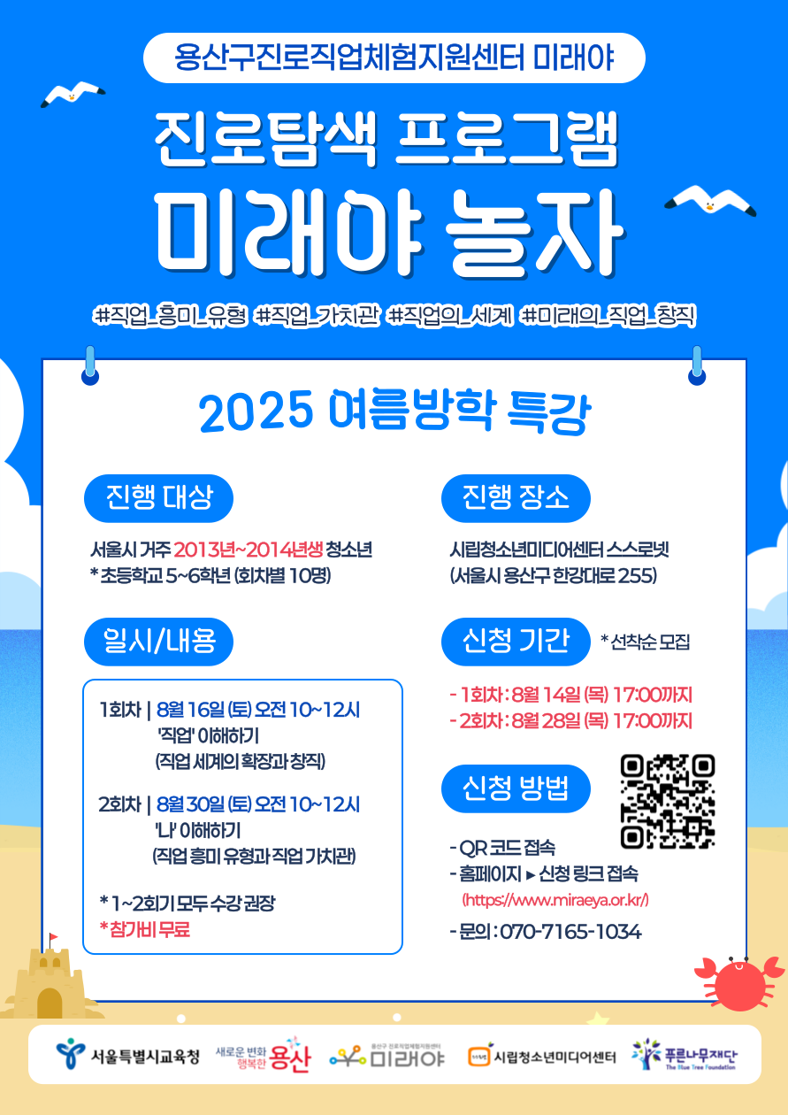 [모집] 2025년 진로탐색프로그램 <미래야 놀자> 여름맞이 특강 참여자 추가 모집 (~8/28)